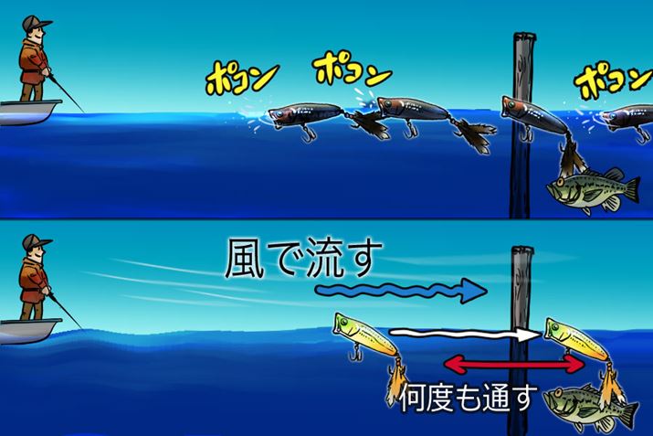 また、多少の風や流れがあるならば、それを利用するテクニックもある。