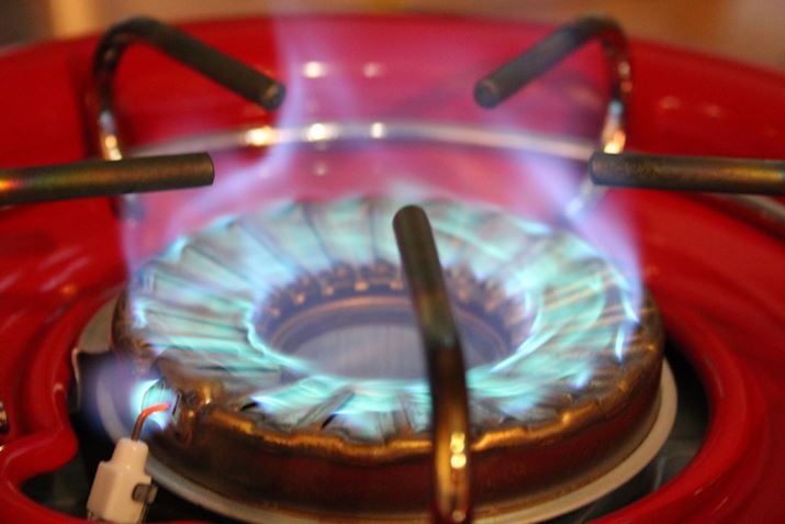 ヒバリンを点火し、火力をチェックしてみます。アウトドアで使用するガス式バーナーは、コンパクトなものでも高火力をうたい文句とする製品が多い中、ヒバリンは2,400kcal/hと決して高火力ではありません。