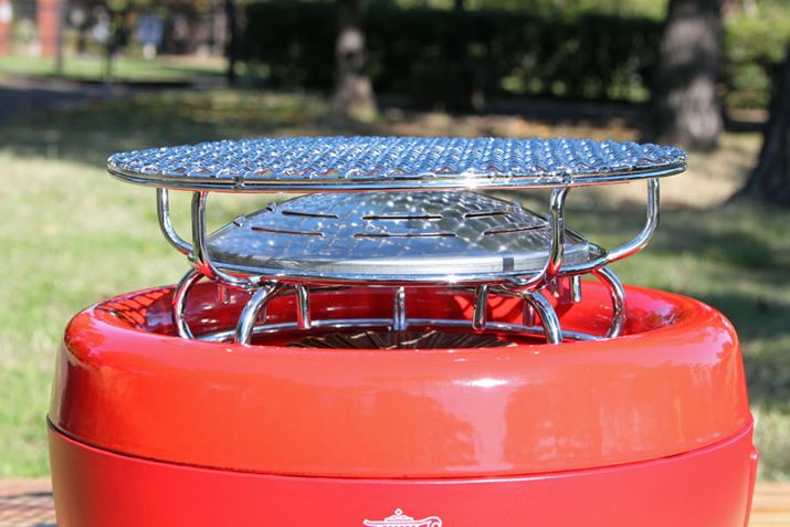 「火鉢」と「七輪」を掛け合わせたネーミングの「ヒバリン」は、日本の伝統的なコンロともいえるフォルムながら、ポップなカラーを採用。そのユニークでかわいいデザインについ目がいってしまいますが、アウトドアでも使えるように、バーナー部を一段低くして風の影響を受けないようにするなどの工夫を施しているといいます。そして、シリーズ共通のカセットガス式なので、初心者でも使いやすいはず。コンパクトなサイズで、収納場所や持ち運びのじゃまにならないのもポイントです。