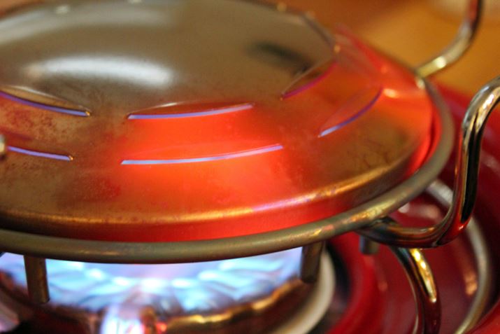 屋外で試した結果に納得できなかった筆者。個体差による不具合かもしれないのでメーカーに製品を確認してもらうと、正常だという回答でした。バーナー部を低くし、風の影響を受けにくい設計となっているものの、やはり風で炎が的確にスリムポットや輻射プレートに当たらなかったことが原因だと思われます。そこで、無風状態で試してみることに。風がない状況を屋外で作ることができなかったので、屋内で試してみました。