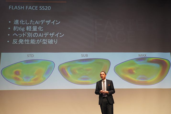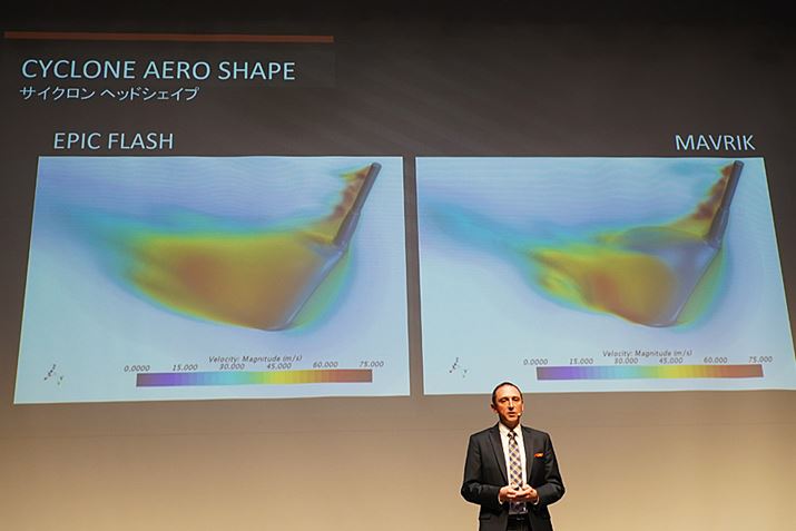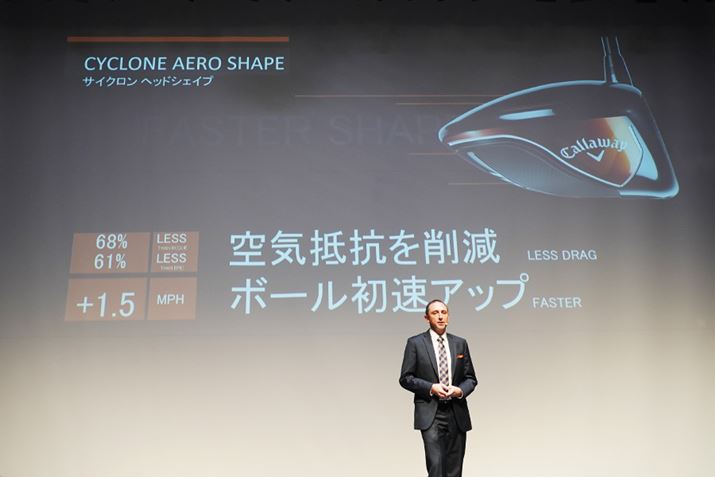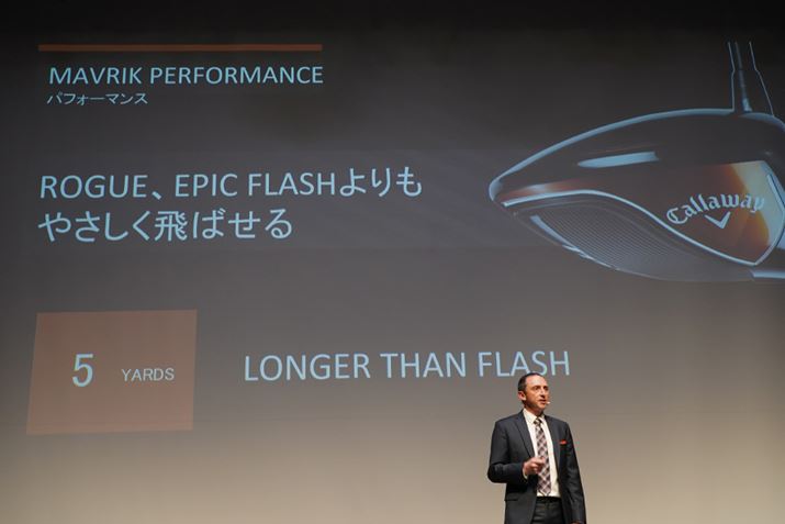 今回発表されたMAVRIK。スライド式のウェイトなど、わかりやすい技術アピールは外見的にはあまり感じませんが、どのへんが進化したのか。どんな新しいテクノロジーが使われているのかが気になるところ。発表会では米キャロウェイ社のアラン・ホックネル氏が登壇して説明してくれました。