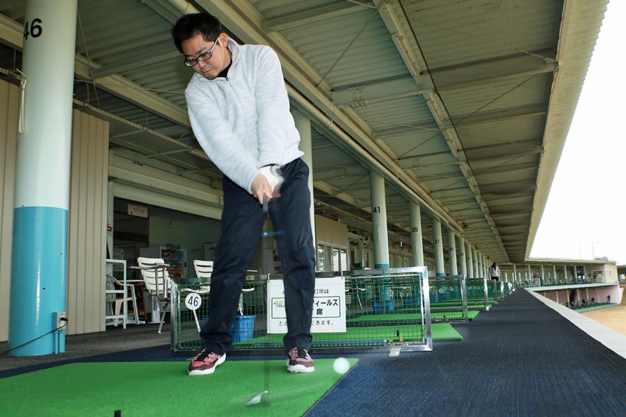 打ってみると、ビシッと狙ったところにボールを打ち出せました。ウッド型UTはパワーのある人にとってはややシビアなところがあり、特にボールをつかまえられる技術を持つゴルファーにとっては、ちょっとしたきっかけで左に飛んでしまう危険性があるのですが、このモデルはそれをほとんど感じません。つかまりも適度に抑えられていて安心して振っていけます。このへんがプロに受け入れられたのでしょうか?