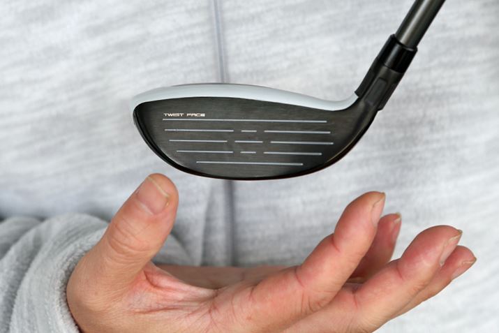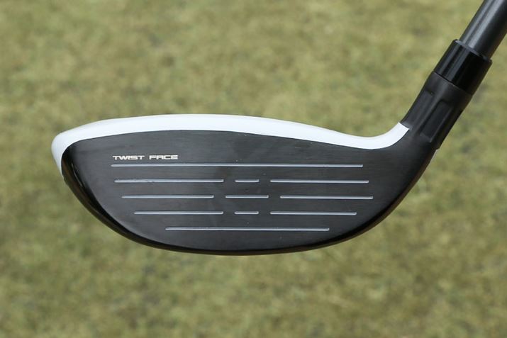 テーラーメイド独自のツイストフェースを搭載し、直進性を高めています。フェースを正面から見ると、ややトゥ側のミスに強そうなイメージがありますね