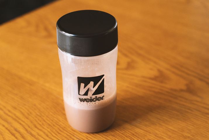 そしてもうひとつ、久米の強力な味方となったのが「チョコレート味のプロテイン」。こちらも1杯あたり120kcalで、炭水化物・脂質ともにひかえめながら、濃厚なチョコレートの味がするので今の久米にぴったり。トレーニング序盤から摂取しているプロテイン類に加えて、これも飲むことにした。