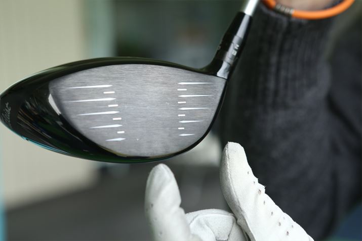 打ってみてびっくりしたのが、打感です。弾道調整機能付きでありながら、フェースに乗っている時間を長く感じさせるほどのやわらかい感触で、音もパシっというマイルドな響き。個人的な感想ですが、カチャカチャ付きではここ数年で1、2を争う感触のよさでした。