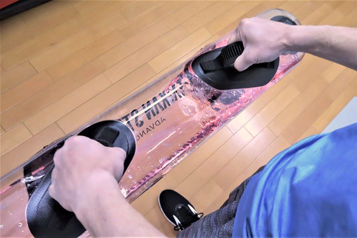 使用する際のポイントとしては、一般的な筋トレと同様に呼吸を止めないこと。一部の種目には有酸素運動的なものもあり、呼吸をしながら身体全体に酸素を回していけば、身体の引き締め効果がさらに期待できます。筋トレのようですが、水を動かさないようにバランスを取りながらゆっくりと動かす種目が多く、終わった後にじんわりと血行がよくなっている感じもありました。肩こりの人は、「キープ」などを取り入れると改善されるかもしれません。