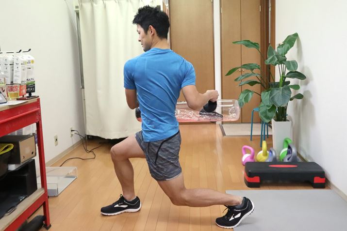 今回紹介した種目の中で、いちばんキツイと感じたのが「ランジ&ツイスト」です。太ももからお尻、お腹周りまで1度に鍛え上げるため、短時間で効果が期待できます。