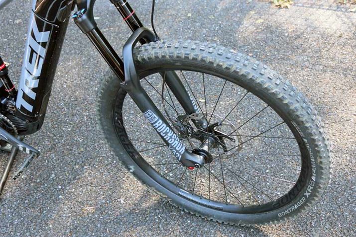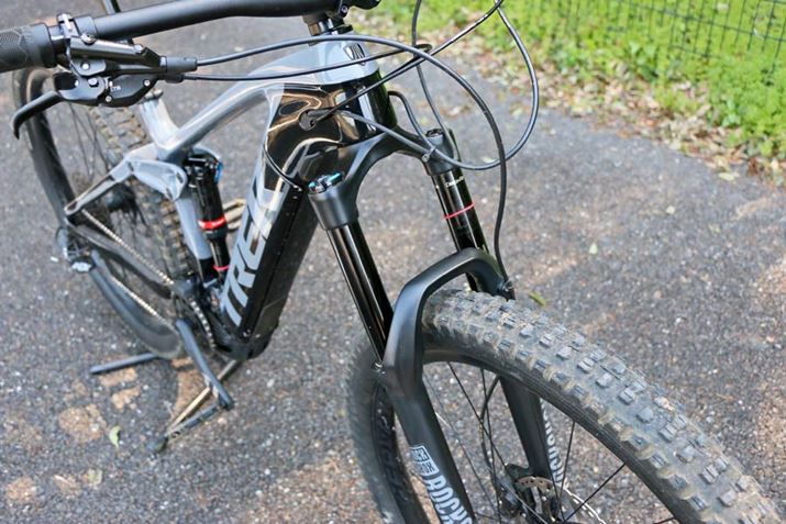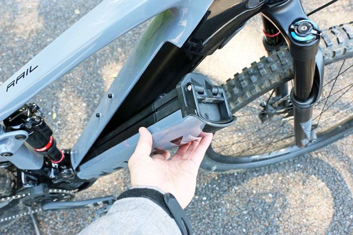 今回紹介するトレック「Rail 9.7」も、もちろんフルサスe-MTB。大手のスポーツ自転車メーカーであるトレックが本気で手がけたモデルだけに、フレームから足回りまで隙のない完成度だ。近年流行りのエンデューロモデルと同じ、フロント160mm、リア150mmのサスペンションのトラベル量を確保。変速も最新のトレンドを取り入れ、リアのみの12段となっている。さらに、フレームだけでなくホイールもカーボン製! その分、価格は79万円(税別)と安くはないが、同社の電動アシスト機能を搭載しないフルサスのマウンテンバイクのトップモデル「Fuel EX 9.9」が106万8,000円(税別)であることを考えると、コンポーネントなどに差はあるもののRail 9.7の価格設定はむしろ割安と言えるかもしれない。