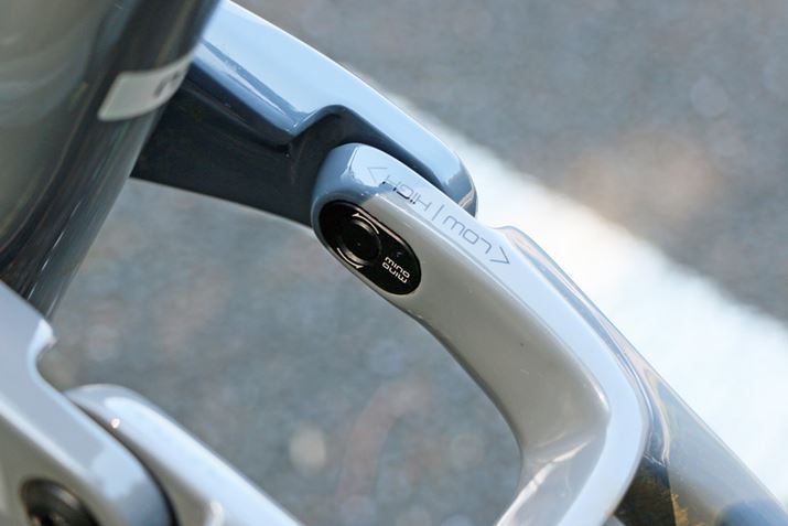 リンク上部にある「Minoリンク」機構を調整すれば、ヘッドアングル(フロントフォークの角度)を0.5°ずつ、ボトムブランケット高を10mmずつ、それぞれ2段階(High/Low)に切り替えできる