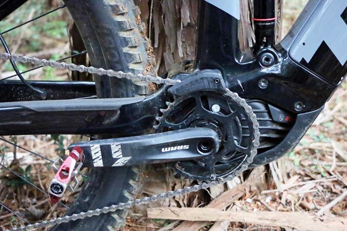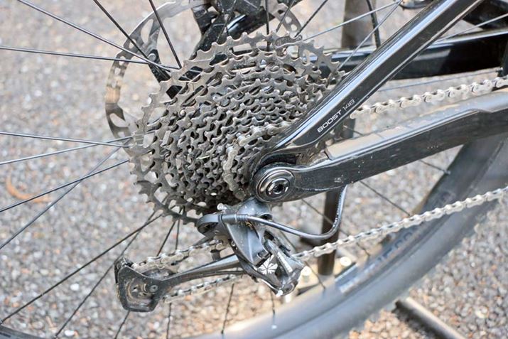 コンポーネントはSRAM「NX Eagle」の12速。リアのスプロケットのもっとも大きなものは50Tサイズを装備している