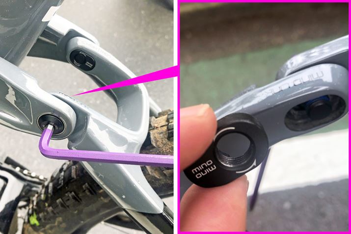「Minoリンク」は六角レンチでネジを回し、内側にある楕円形のパーツを180°回転させるとネジを留める位置が変わり、HighとLowが切り替わる