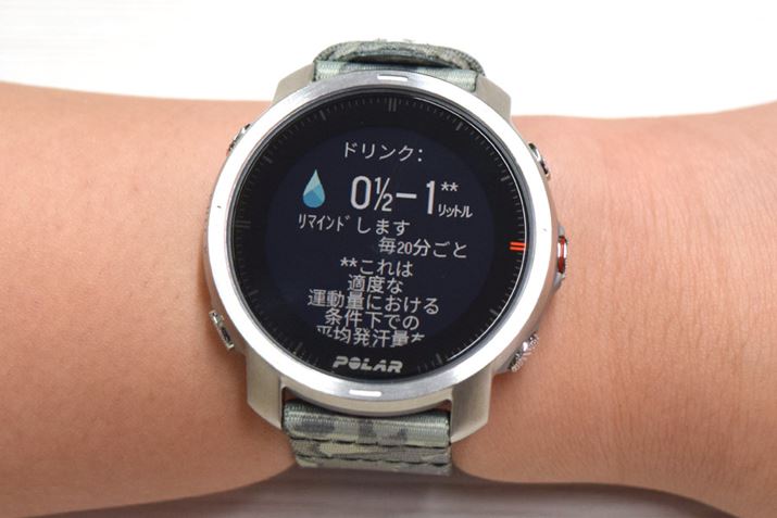 アラートは、ウォッチ本体にアラーム音+振動で通知。登山やトレイルランニングなど、時間の長いセッションを行う場合に便利だ