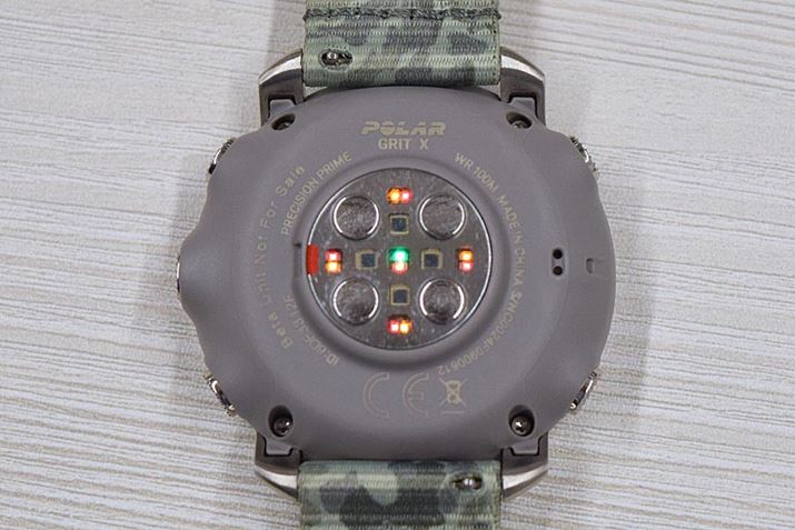 本体裏面に搭載された新しい「Polar Precision Primeセンサー」。モーションノイズを除去するため、より正確な心拍データが計測できる