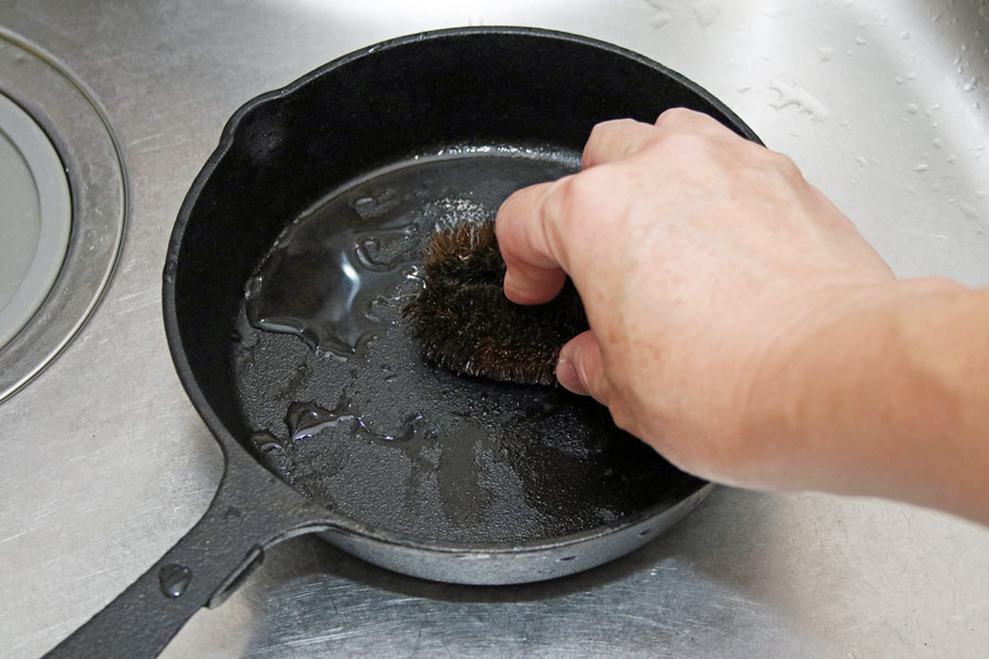 水洗いする際は、金属製以外のタワシを使って汚れを落とします