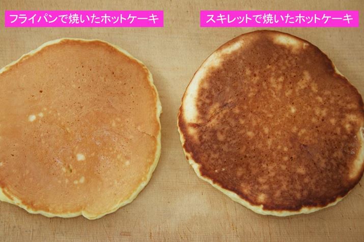 セラミックコーティングされたアルミ製フライパンとスキレットで、ホットケーキの焼き上がり具合を検証!