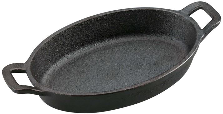キャプテンスタッグ「両手スキレット オーバル<M> UG-3034」。サイズは120(幅)×225(長さ)×40(高さ)mmで、重量は約800g
