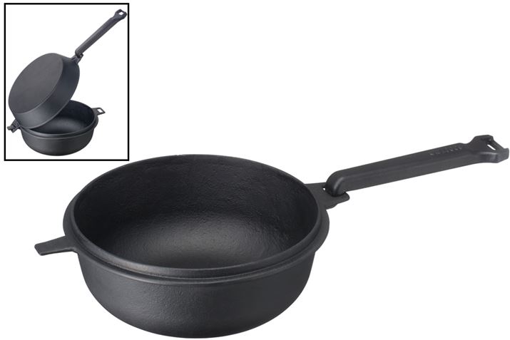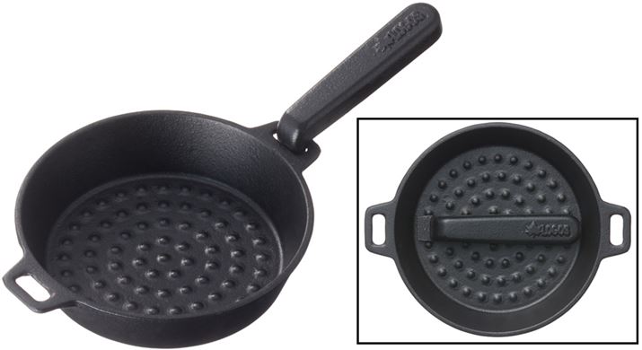 「スキレット 18cm UG-3043」を2つ用意して、ひとつをフタのようにかぶせれば小型のダッチオーブンに変身。取っ手にストッパーが装備されているので、ズレも心配ありません