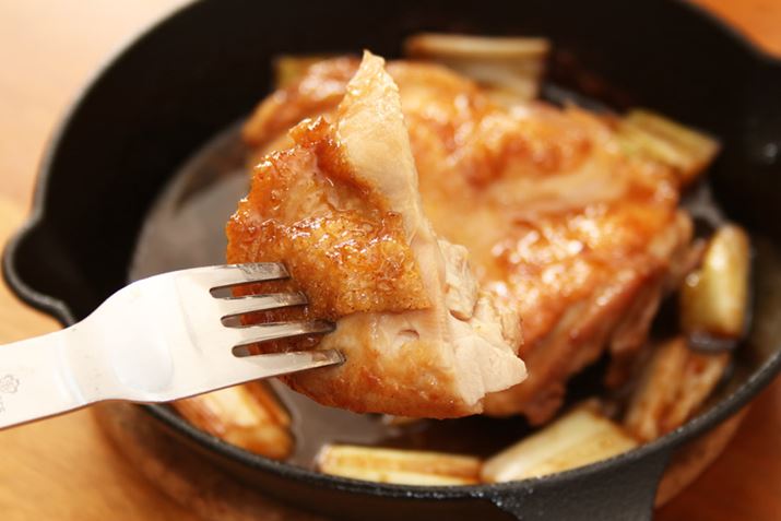 皮はこんがり、肉はふっくらとしてジューシー。そして、長ネギはトロトロで甘い! アルミ製フライパンよりも焦げ色が付きやすいので香ばしさも増し、食欲をそそります