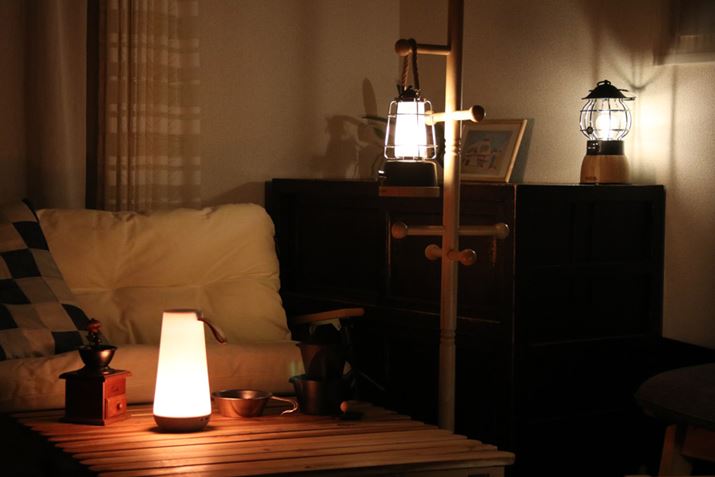 キャンプ用だからとランタンを物置に収納しておくのはもったいない。いつでも手に取れる場所に置いておき、思い立ったらすぐ家キャンができるようにしてみてはいかがでしょうか。そんな楽しみ方ができるのも、LEDランタンならでは。燃焼式ランタンではできない遊びです。