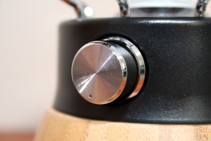 電源スイッチもシンプルで、アンティークな雰囲気で統一されています。このスイッチを回して、35〜200lmの範囲で無段階調光が可能
