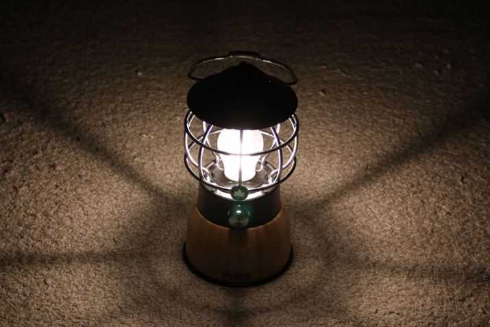 部屋の隅に置いて間接照明として使うのもおしゃれな本製品は、クラシカルなデザインが特徴的。戦前に北米の鉄道会社が使用していたランタンをモチーフにしており、ガラスホヤもあえて気泡が入ったものを採用しています。明るさは無段階で調整でき、最大100時間点灯可能。