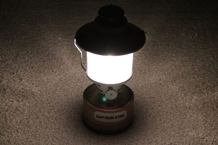 点灯すると、バブルガードの影が出るものの明るさに影響なし。しっかりとボディの真下まで光がまわります。連続点灯時間は8〜90時間
