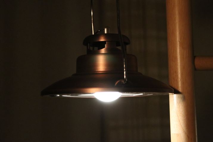 ホヤがベース部分よりも小さいため真下に少々影ができますが、全体的にムラなく光る印象。フロストホヤで光はやわらかく、落ち着きます。連続点灯時間は3.8〜75時間