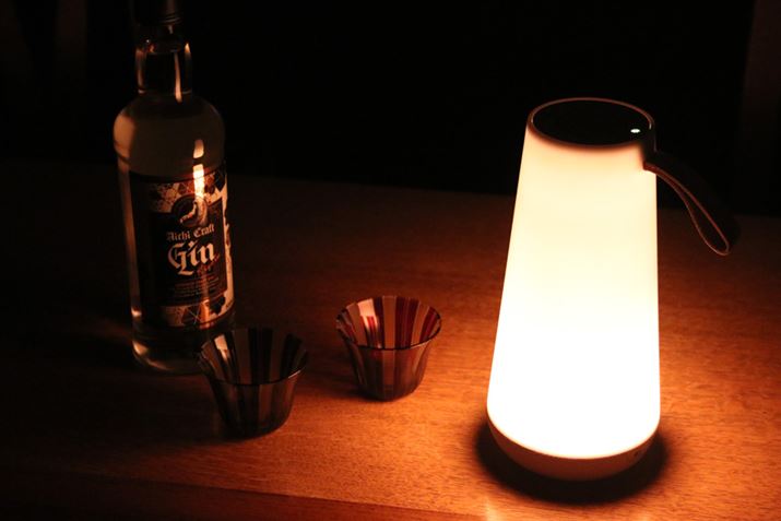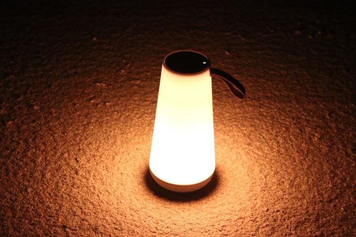 ランタンとスピーカーを融合させた構造となっており、Bluetooth接続したスマートフォンなどから音楽を再生し、光と音楽で空間を演出できます。360°どの位置で聞いても同じ音が楽しめるよう筐体を円錐形にするとともに、立体的な音を再現するため、上部にツィーター(高音部)、下部にウーファー(低音部)のスピーカーを搭載。最大23台の「UMA Mini」と同期して、ひとつの音源から同じサウンドを流せるパーティーモードが用意されているのもユニークなポイントです。そして、肝心の明かりに関しては、ろうそくのような温かみのある色味。ボディの大半が発光し、その光をさえぎるガードもないため、家キャン以外でも使いやすいランタンでしょう。