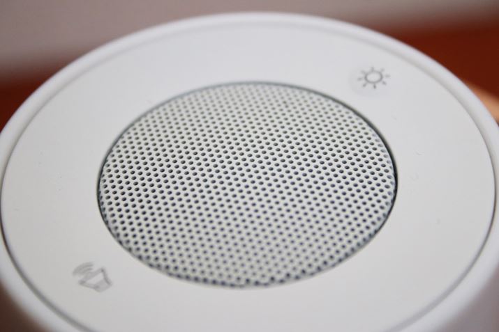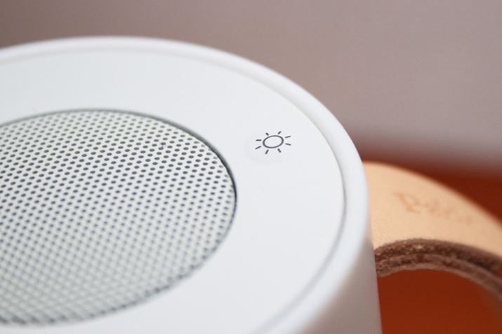 音楽の再生や選曲はBluetooth接続したスマートフォンなどから行いますが、音量調節は本体天面に装備されたタッチパネルで操作可能