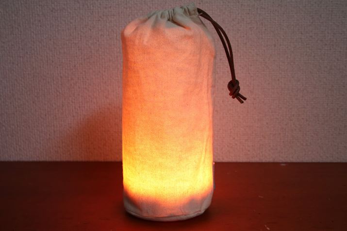 付属の収納袋は保管や持ち運びに使うだけでなく、UMA Miniを収納袋に入れてまま点灯させると、また違った表情の明かりが楽しめます