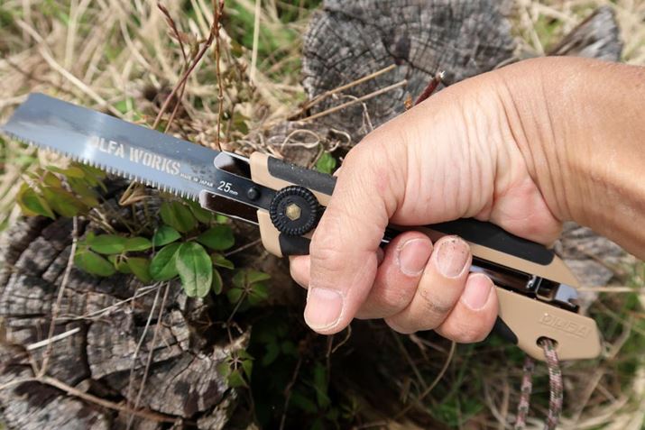 残るひとつ、フィールドノコギリには残念ながら付加的な機能はない。フィールドナイフのように金属の爪を付けるわけにはいかなかったのだろうか? 少しもったいない気がする。