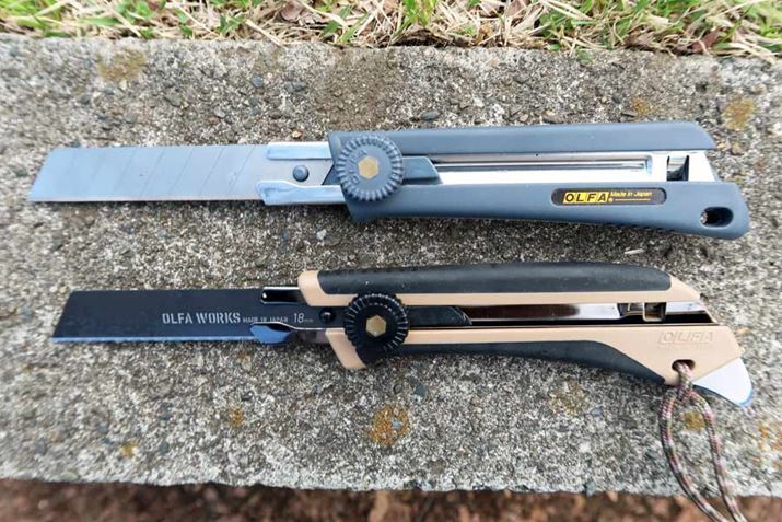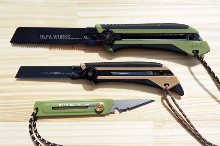 興味深いのは、これらの製品はいちからオリジナルとして作られているわけではなく、“母体”となるモデルが、オルファのシリーズ内にあることだ。僕の自宅の工具入れや机の引き出しをガサゴソとひっくり返してみると、今回紹介する3種の内、2種類と似た製品が見つかった。このような定番品をブラッシュアップさせることで、アウトドアで使いやすいモデルへ進化させた結果が、新ブランド「オルファワークス」の3種なのであろう。