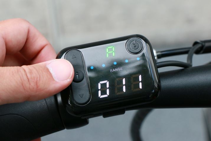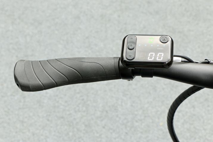 アシストのオン/オフやモードの切り替えは、左手側に装備されたスイッチ一体型ディスプレイで行う。ディスプレイに表示されるのは走行距離やスピード、現時点のバッテリー残量で走行できる距離とシンプルだ