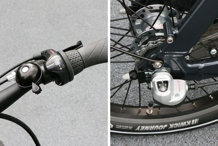 変速ギアは3段の内装式。停止している際にも変速できるので、街乗りで使いやすい