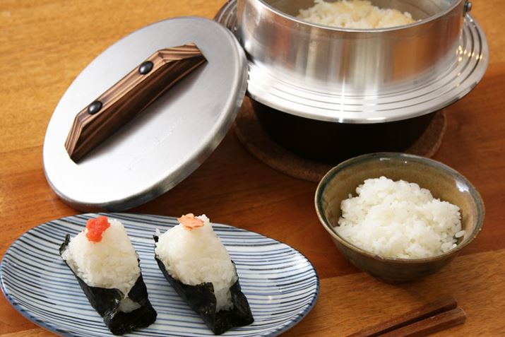 釜中央分に羽が付いてはいるものの、かまどに載せるワケではないので本来の役割とは別物。かまど炊飯を想起させるための演出なのかもしれませんが、羽釜で炊くとよりごはんがおいしそうに思えるので、この形で正解です!