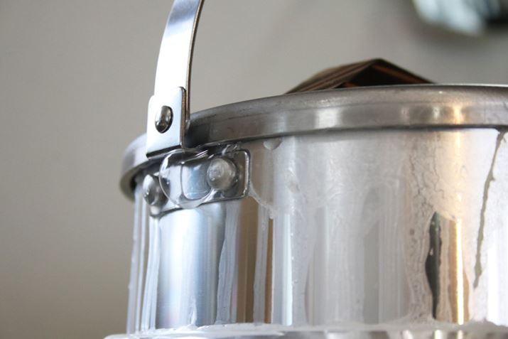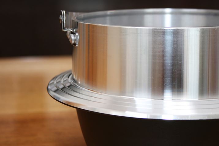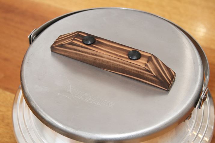 沸騰時にフタが浮き上がり、釜内の圧力が下がらないように、フタはあえて重みのあるステンレス製とされています。計ってみると約740gあり、総重量の4割ほどを占めていました
