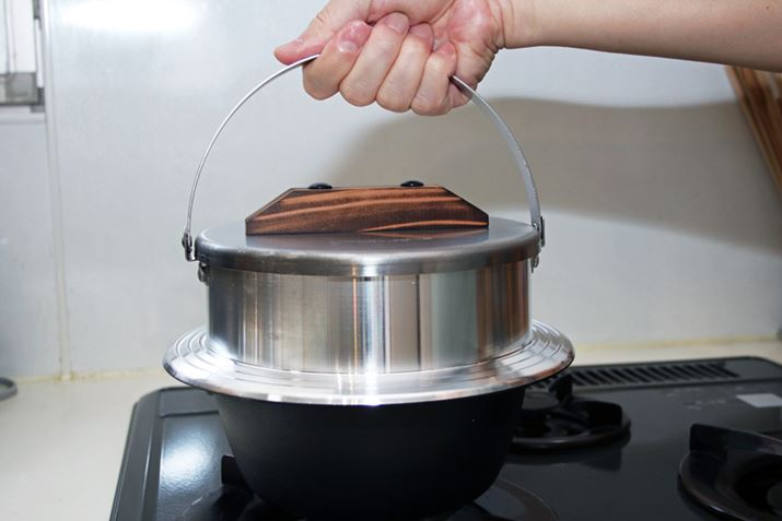ごはんの炊き方は「はじめちょろちょろ中ぱっぱ」とよく言われますが、直火での炊飯は最初から強火が基本。沸騰するまで強火で加熱します