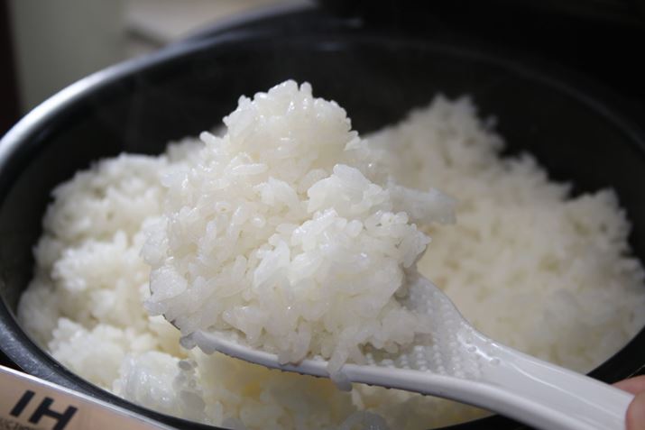 炊き上がったごはんを見てみると、白くて米粒がしっかりと立っています