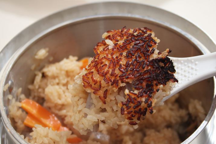 直火で炊いたごはんは、おこげができるのもたまらないところ。炊き上がったごはんをしゃもじで混ぜた際、ほんのりと香ばしいニオイが漂ってきて、最高です!
