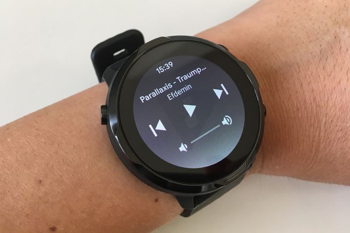 「Spotify」などの音楽アプリを本体にダウンロードすれば、そのコントローラーとして使用できる。「Spotify」はスマホと連動するアプリのため、ランニング中はスマホを携帯する必要があるが、いちいちスマホを取り出さなくても手首上で選曲などが行えるのはうれしい