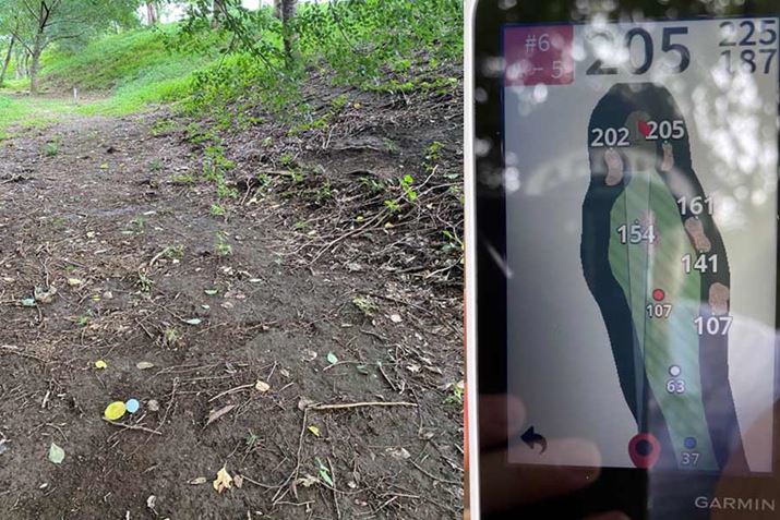 コースマップ上には、現在地からハザードやレイアップポイントまでの距離を表示してくれるので、初めて回るコースに行ってもガンガン攻めることができますよ!