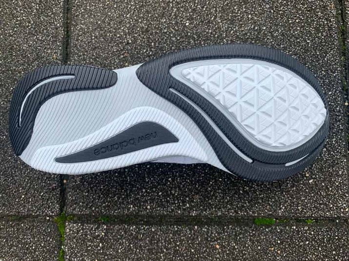 アスファルトやコンクリートといった舗装路で最高のグリップ性を発揮するアウトソールパターンだが、公園の土の上でも十分なトラクション性能を提供してくれた
