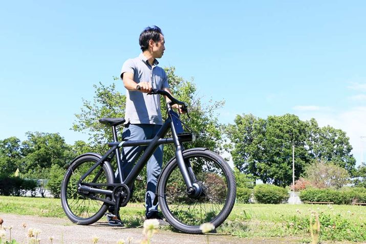 29インチサイズの大径ホイール(ロードバイクに用いられる700Cと同径)を採用した「VanMoof S3」。29×2.0インチの太めのタイヤを装備している。重量は約19kgで、適応身長は170cm〜。価格は250,000円(税込)
