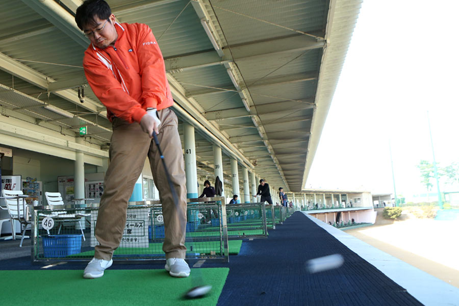 お借りしたスペックは、Sフレックスの3W(15°)。最初は、ドライバーで大体40m/sぐらいのヘッドスピードで打ってみました。ロフト角の立った3Wだけあって、芯でとらえてもロフトなりのライナー性中弾道。かなりの低スピンなのでランはかなり出るでしょうが、キャリーは期待できません。ドライバーでヘッドスピード40m/sぐらいの方なら、ロフトがあって上がりやすい5Wがおすすめです。