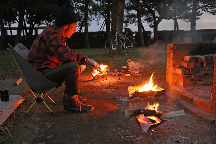 自転車に積載しやすい焚き火台という条件を設けたため、必然的に4製品とも小型・軽量モデルとなったが、それぞれに個性があり、どれも魅力的だった。重視するポイントから絞り込んでいけば自分にぴったりな1台が選べそうではあるが、実際に使った筆者は、積載性を優先するならあれ、調理のしやすさならこれというように、なかなか1台に絞り込めずにいる。というのも、バイクパッキングで一緒に出かける人の有無や、複数人で集まる場合、現地に焚き火台はいくつあるか、ソロだったとしてもツーリングの距離、荷物の量、調理の有無など使用シーンによってベストな焚き火台が違ってくるからだ。まぁ、My焚き火台を持っていない初心者はそこまで考えなくてもいいのかもしれないが……。