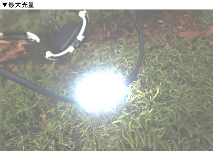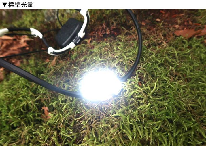 直径2.5m程度の範囲が明るくて歩きやすいが、中心部は明るすぎて、バッテリーの消費がもったいないとも感じる