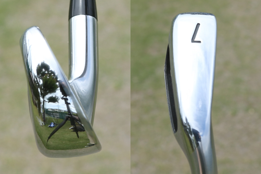 ロングアイアンとミドルアイアンには、センターからヒールに向かって薄くなるバリアブルフェースというデザインを採用。飛距離の落ちやすいヒール側のミスヒットに強い設計にすることで、飛距離のバラつきを抑えています
