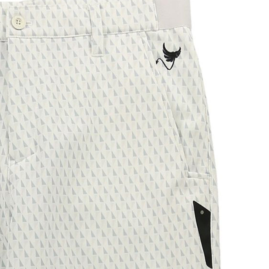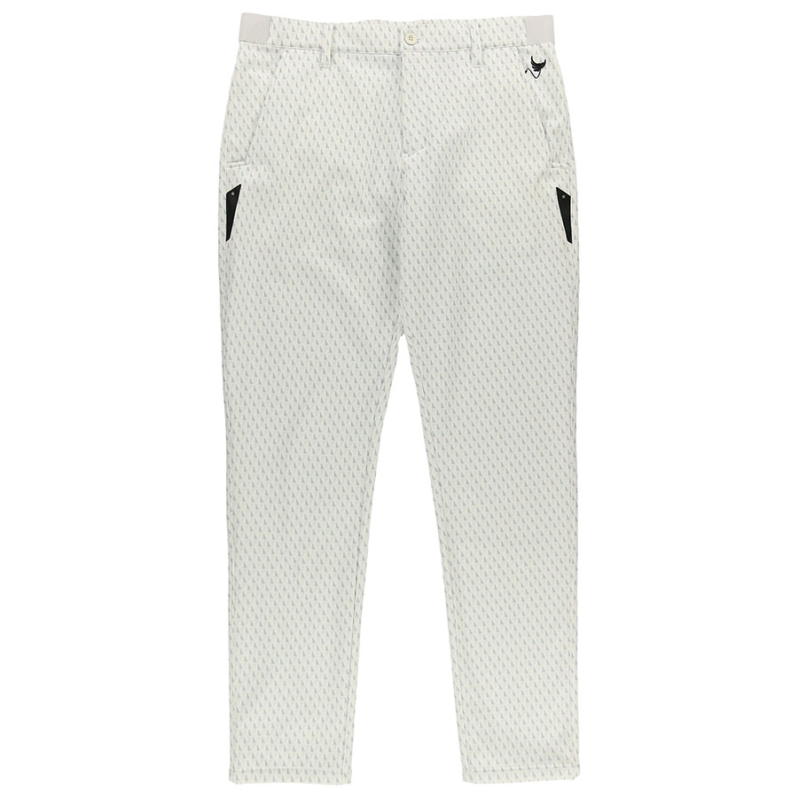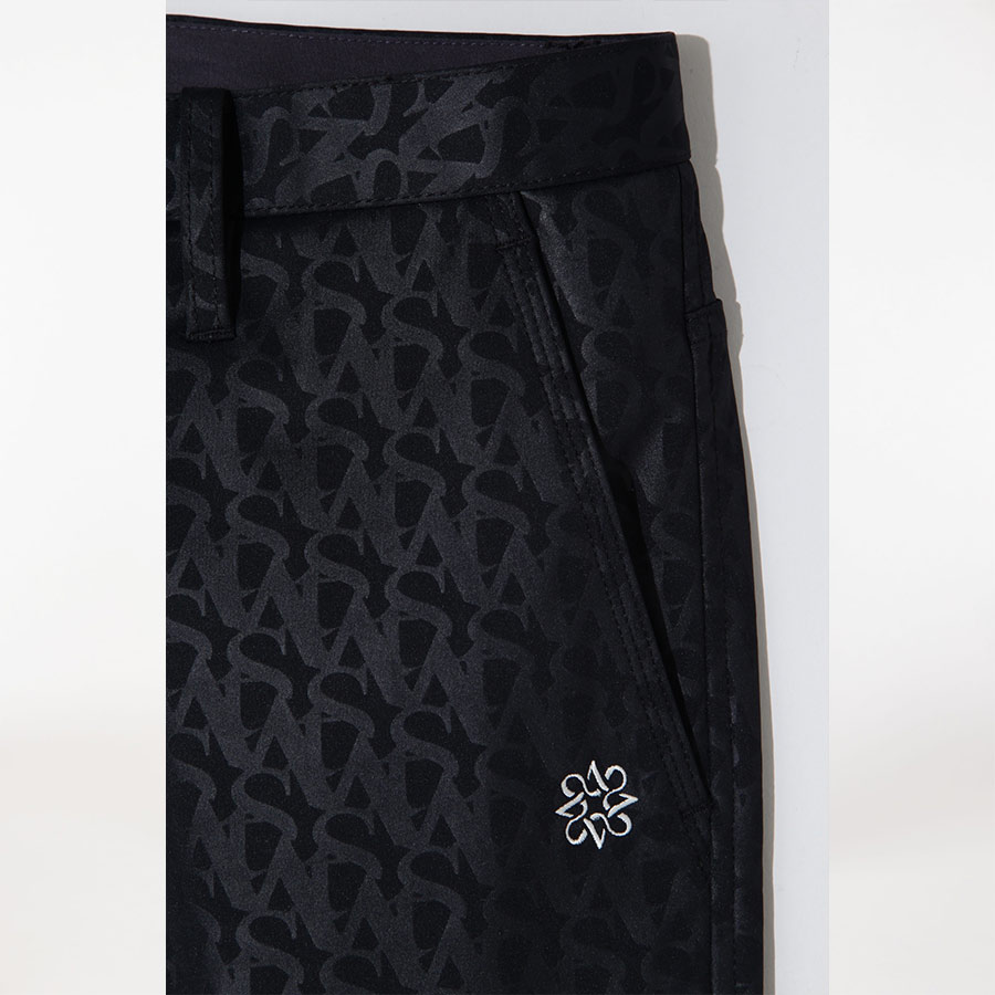 ストレートなシルエットに心地よいストレッチを備え、抗菌性もすぐれているのでウイルス対策にも効果的。エンボス加工で立体的に表現した総柄のロゴモチーフと光沢感のある生地が抜群の存在感を放ちます。