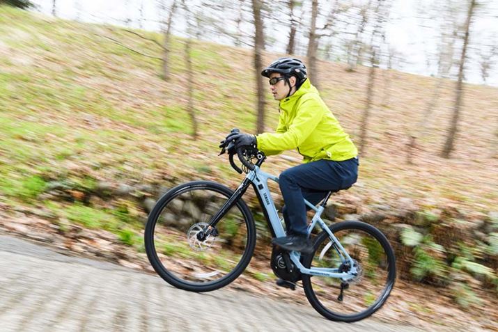 そして、もっとも驚いたのが未舗装路での安定性だ。舗装路で軽快に走るグラベルロードは、逆に、荒れた路面での安定感は劣る場合が多いのだが、WABASH RTはアシストを生かしてグイグイ走っても、路面のギャップや砂利などにハンドルを取られるような挙動を示すことがない。シートポストにサスペンション機構が組み込まれているので、お尻に振動が伝わってこないことは想定内だったが、ハンドルにもあまり振動を感じないことは予想外だった。大きめの砂利が敷き詰められた道を走ってみても、安定感の高さは変わらず。しかも、アシストがパワフルなので、抵抗の多いオフロードでも疲れを感じずに走り続けられる。あまりに快適なので、予定していた距離をオーバーしても走り続けてしまったくらいだった。