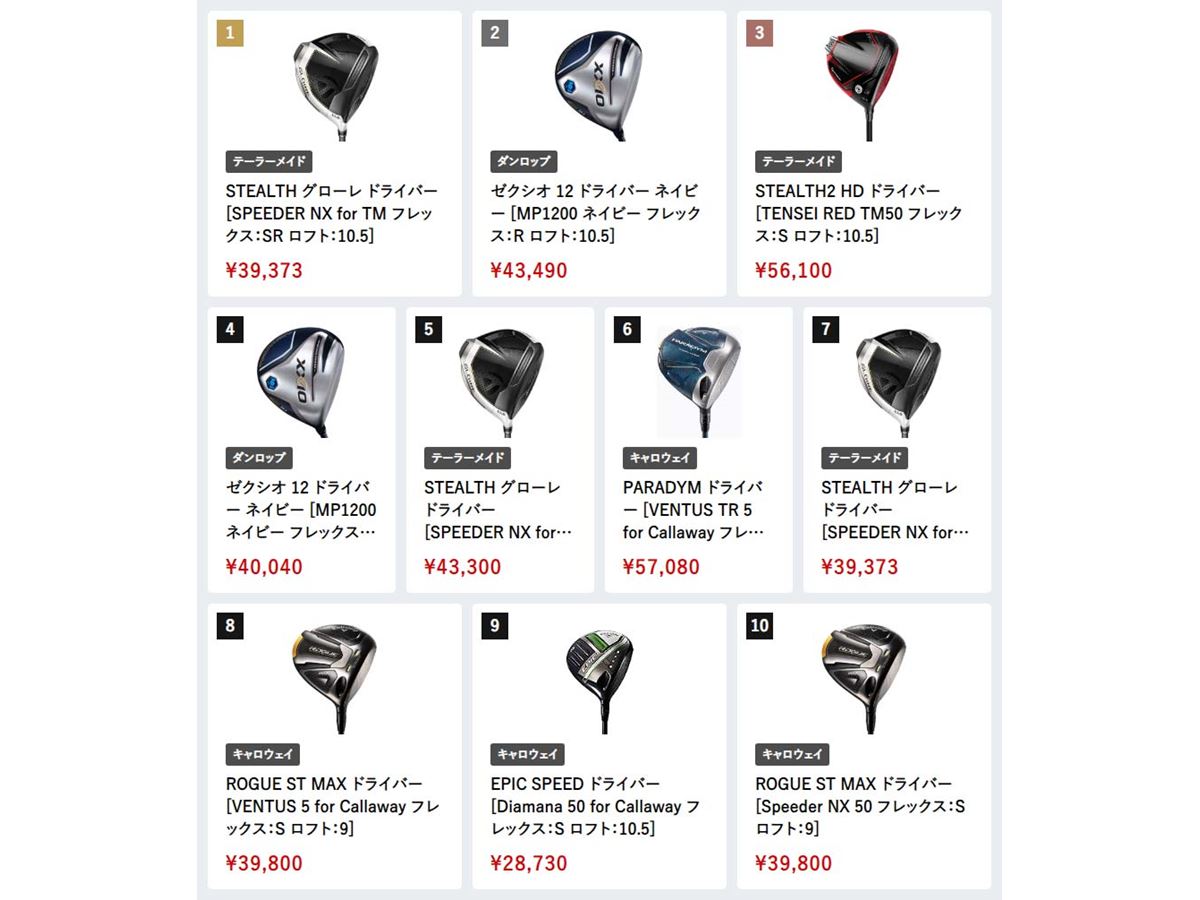 10月は、2023年モデルのテーラーメイド「STEALTH 2」とキャロウェイの「PARADYM」による首位争いに注目。また、「ゼクシオ12」の価格が下がっているので、ランキングにどのように影響するかも注目である。
